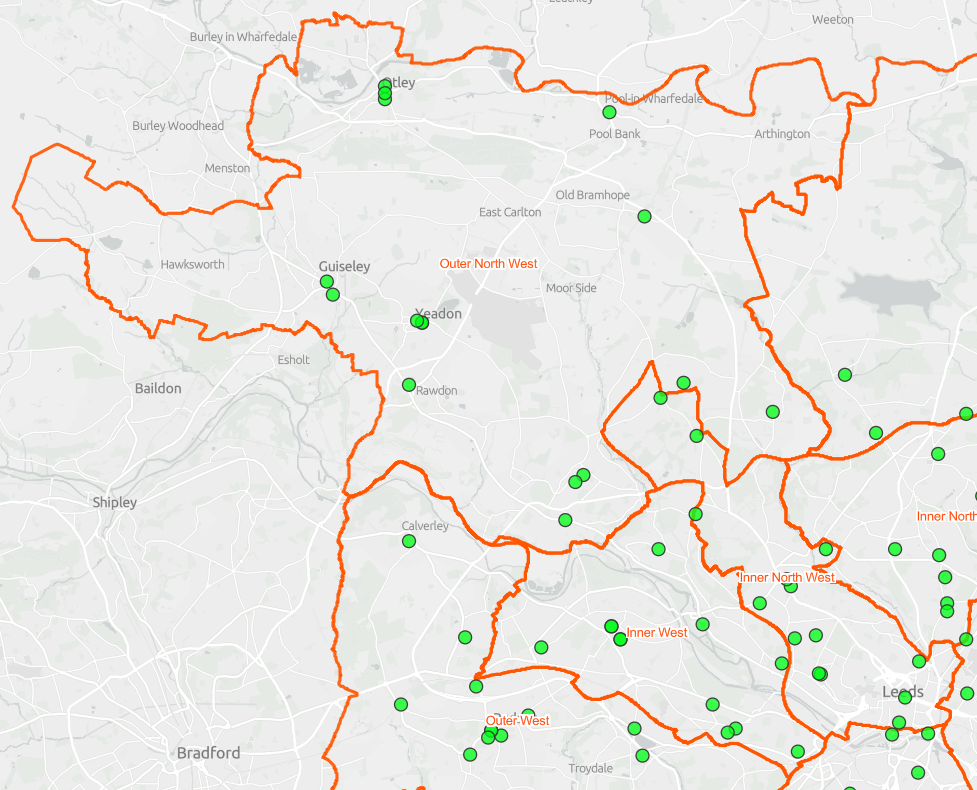 Map of pharmacy locations. February 2026. Zooming to Outer North West, Inner West, Inner North West localities
